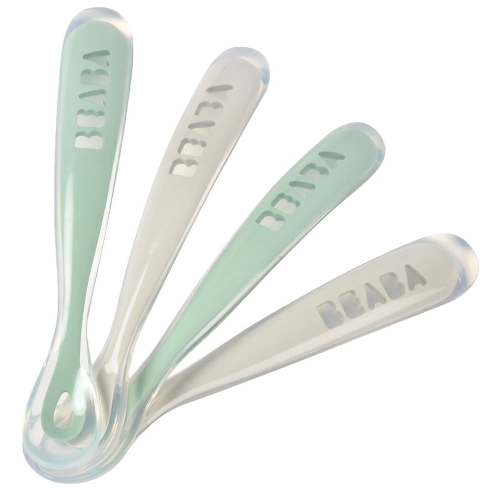 Beaba - 1st Age Silicone Baby Spoons - Grey/Sage - Pack of 4