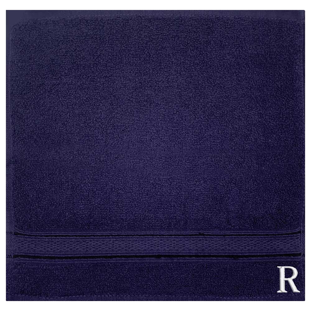 Byft - Letter R Monogrammed Face Towel - 30 x 30 cm - 6pcs - Navy Blue