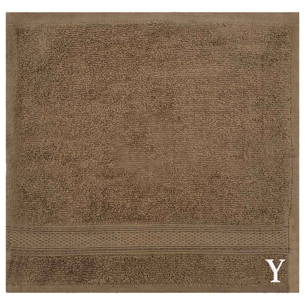 Byft - Letter Y Monogrammed Face Towel - 30 x 30 cm - 6pcs - Dark Beige