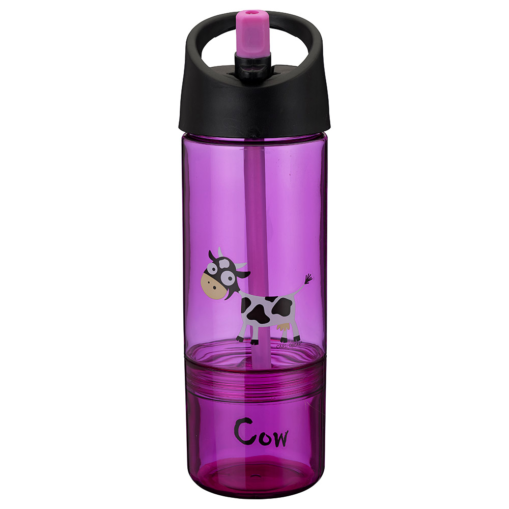 - Dual-function kids' water bottle with 0.3L top bottle and 0.15L bottom snack cup