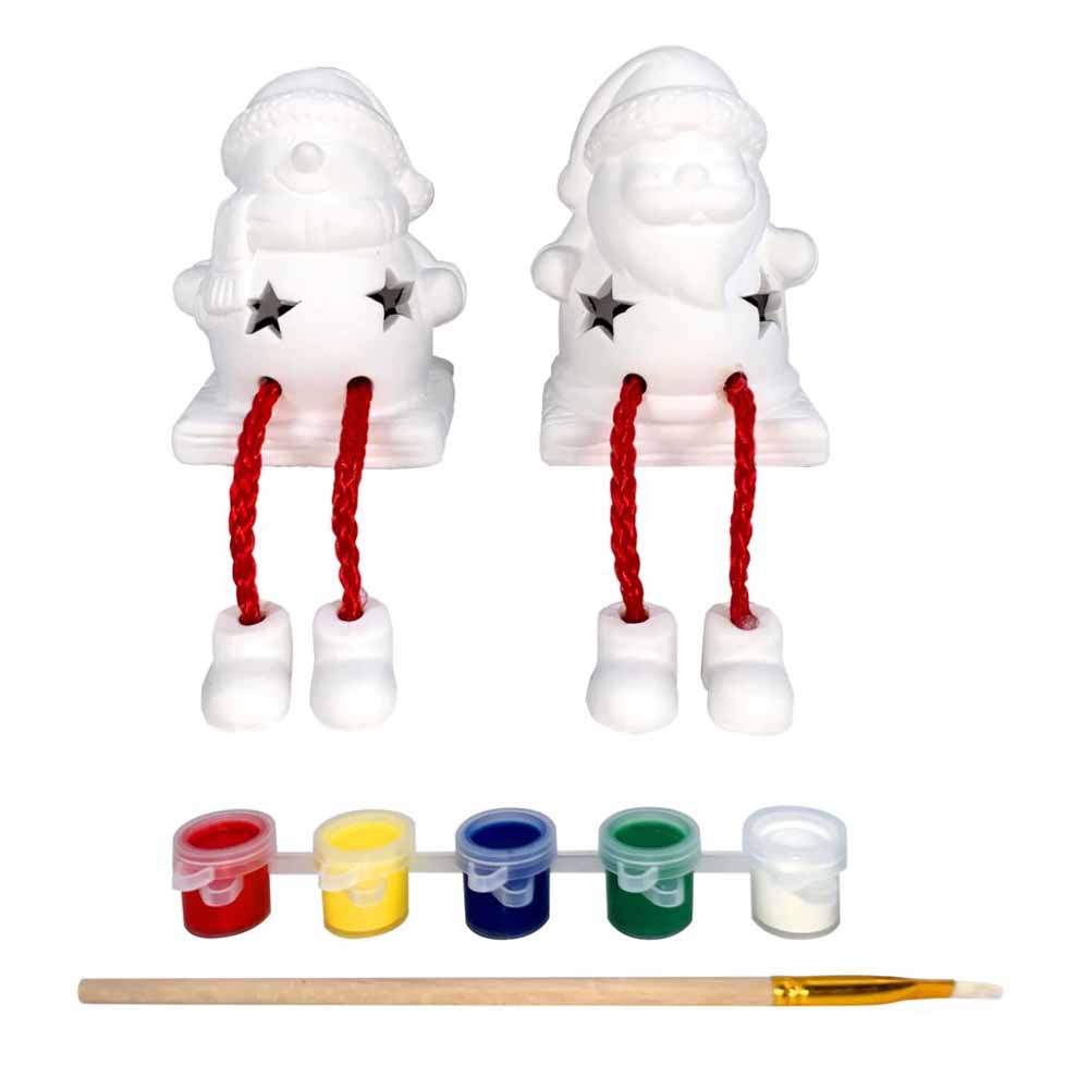 Christmas Magic - Santa & Snowman Diy W/Light - Pack of 2 - White