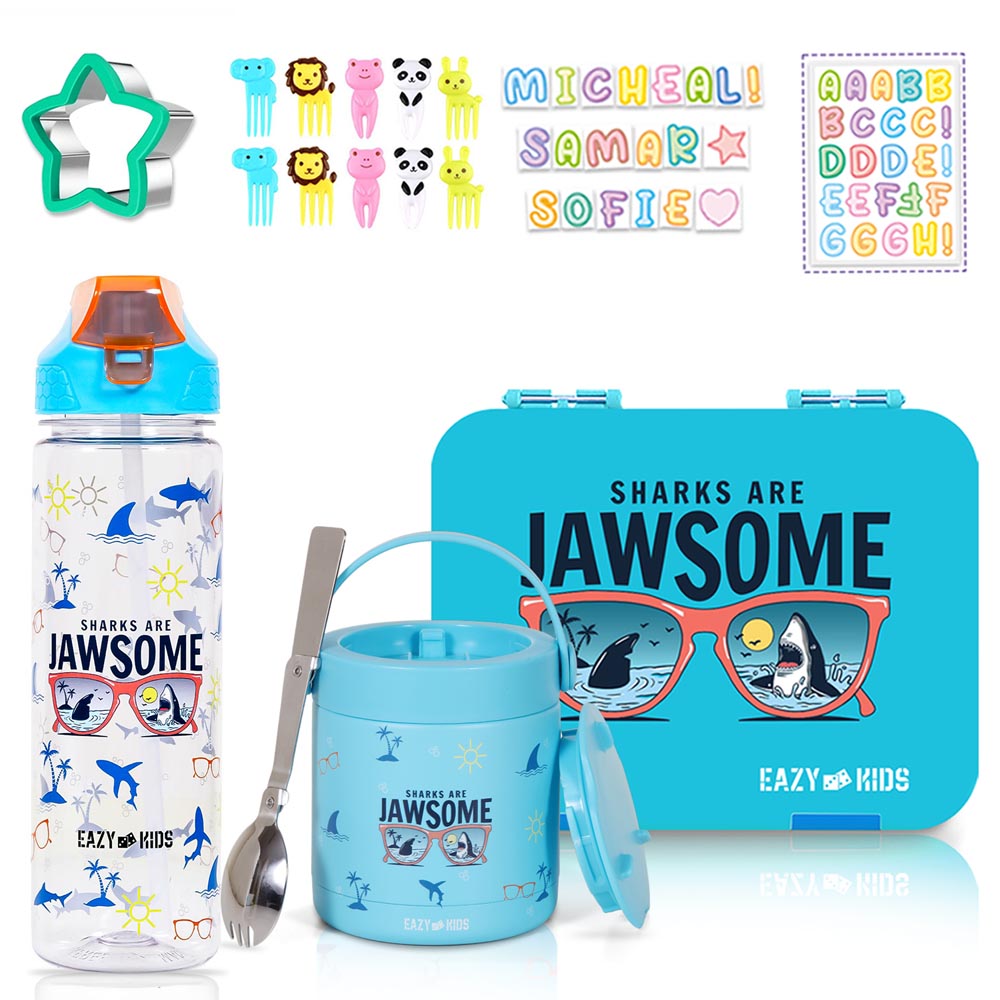 Eazy Kids - 6 Compartment Bento Box w/ Water Bottle & Food Jar - Jawsome