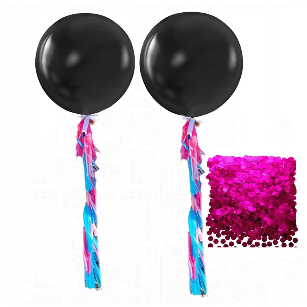 - PACKAGE INCLUDES 2pc 36" Round Black Balloon withPink Pre Filled Confetti
