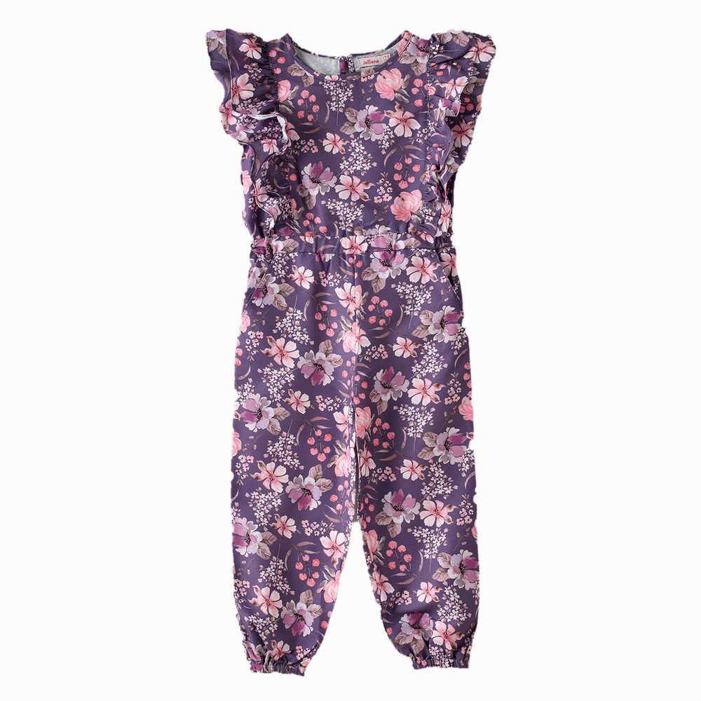 Jelliene - Blooming Fun Girls' Viscose Floral Print Jumpsuit - Purple