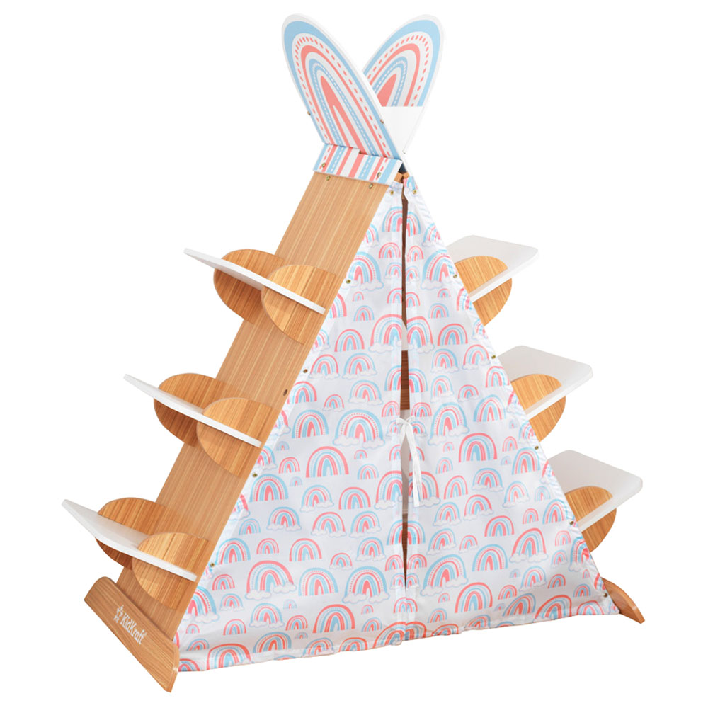 div:first-child]:line-clamp-4"> The KidKraft Book Nook Tent with Shelves provides a playful place for both holding books and reading them. Its unique teepee design is not only practical, but fun too. Slanted sides provide plenty of space to hold kids' favourite reading material. Three shelves on each side have built-in bookends too to keep books from sliding off. Inside the fabric front is a quaint area for kids to read, nap or just have quiet play time. Tie back the curtains on each side to provide some additional light. With the sturdy wood construction, parents will be thrilled to finally have a bookshelf that's as adorable as it is functional.