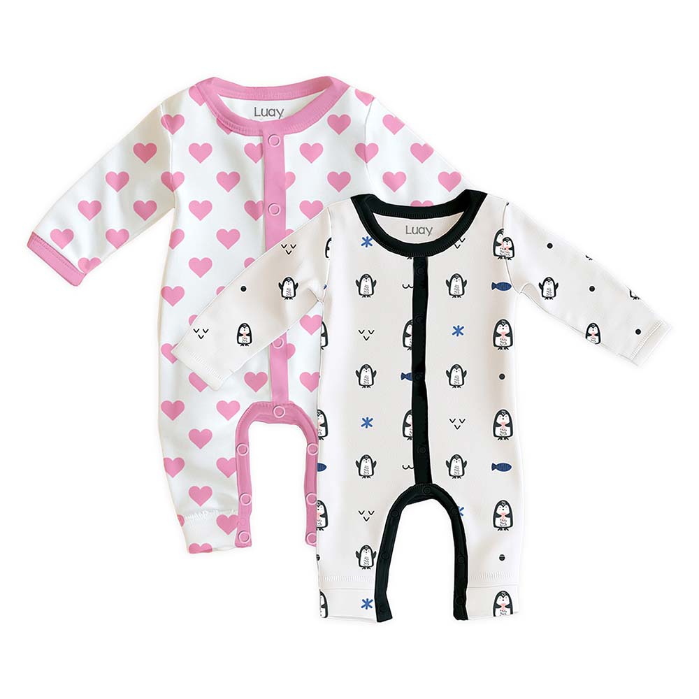 Luay - 2pc-Set - Heart & Penguin Printed Baby Romper - Multicolor