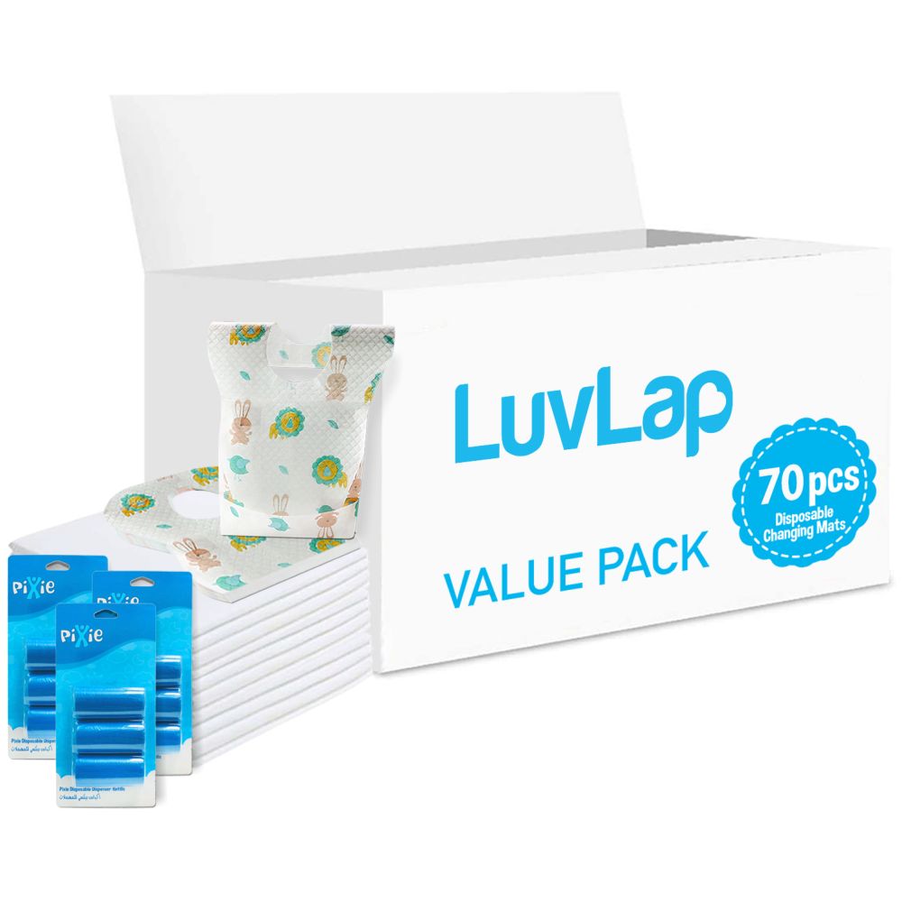 Luvlap - Changing Mats 70 + Pixie - Bib 70 + Pack Of 3 Refill Blue 180 Nappy Bags