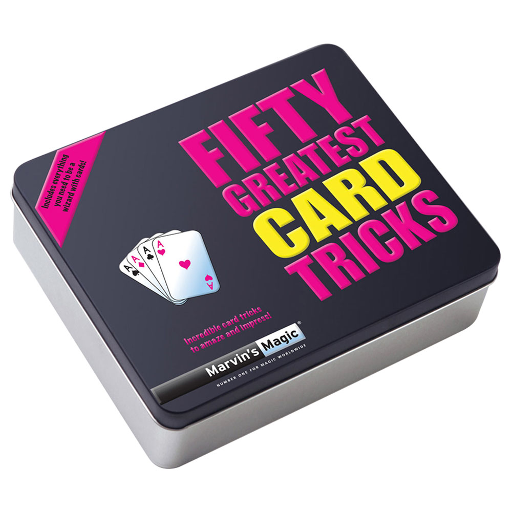 - TRICKS SUITABLE FOR BEGINNERS OR PROFESSIONALS - Card tricks are fantastic traditional magic tricks for children and this great Marvins Magic Fifty Greatest Card Tricks set will allow kids (or adults) to easily pick up those famous card tricks they know, and many they don't! Including a handy instruction booklet that's easy to follow so you can pick up he tricks in no time at all. This great playing cards set allows you to entertain your friends and family and offers hours of fun!