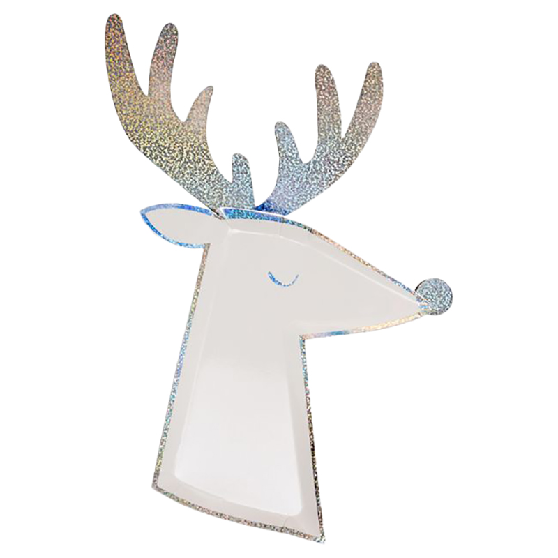 Meri Meri - Silver Sparkle Reindeer Plates 8pcs