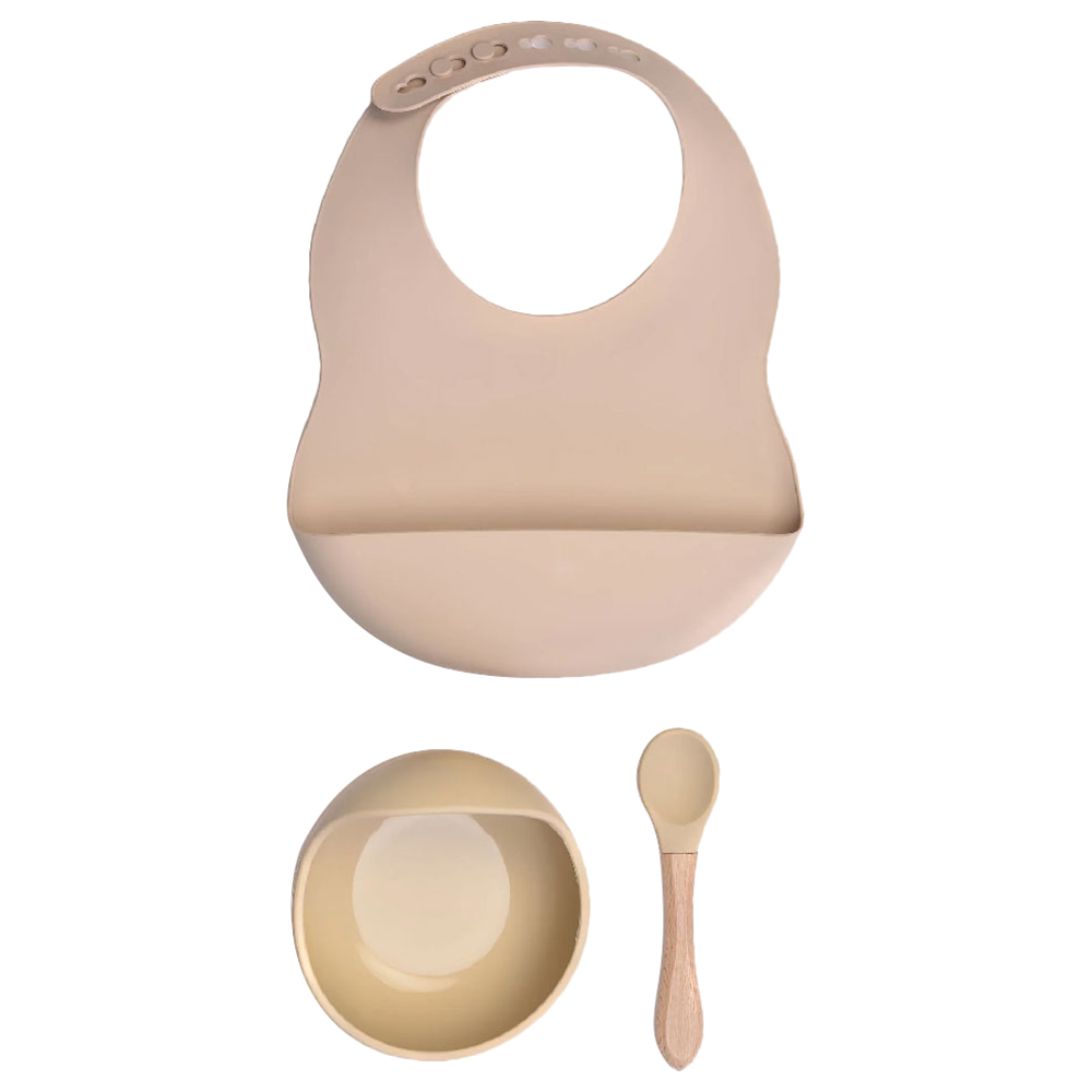 Milk It Baby - Bib And Bowl Set - Sandy Beige