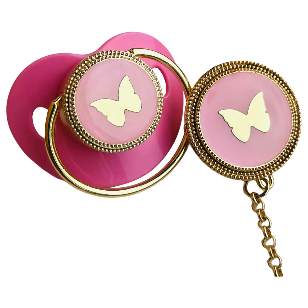 Mini Plum - Pacifier And Clip Set - Butterfly Pink
