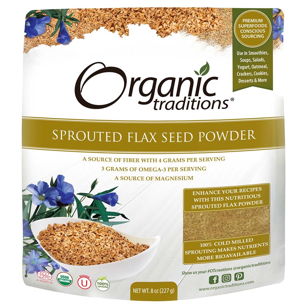 div:first-child]:line-clamp-4">Flax seeds have been used as a staple food for thousands of years by many cultures. Sprouted Flax seeds are a source of Calcium and Iron, a high source of Fiber and provide 3 grams of Omega-3 per 1 heaping tablespoon 15 gram serving. These activated sprouted seeds deliver more nutrients per gram when compared to raw, non-sprouted flax seeds. The sprouting process improves digestibility and allows for a greater absorption of nutrients. Enzyme inhibitors are eliminated and anti-nutritive compounds such as phytic acid are reduced. The sprouting process not only dramatically increases vitamins and minerals in the seed, it also doubles the antioxidant score (ORAC) making Sprouted Flax not only a nutritional powerhouse, but also more shelf stable than raw Flax seeds. , , Sprouted Flax Seeds contain Omega 3 fatty acids, bio-available essential vitamins and minerals, an impressive host of antioxidants, giving them an ORAC value of 800 per 1 heaping tablespoon 15 gram serving as well as lignans, which are unique compounds that have been shown to provide numerous health benefits. Simply add Organic Traditions Sprouted Flax powder to everything you eat to reduce the glycemic load of any recipe. This sprouted and cold-milled powder is a fast and simple way to enhance your daily diet with an extra boost of dense superfood nutrition.