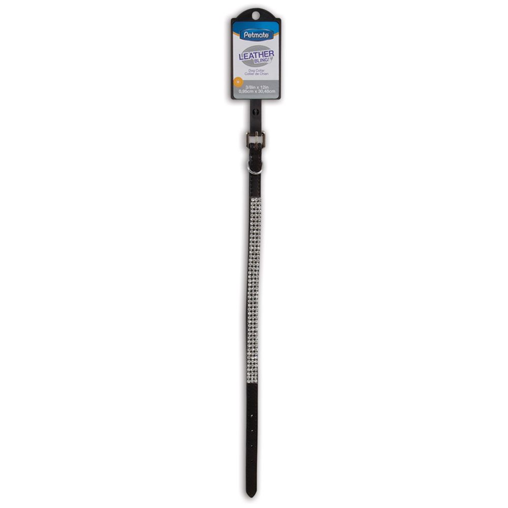 Petmate - Bling Leather Dog Collar 3/8" X 12" Black