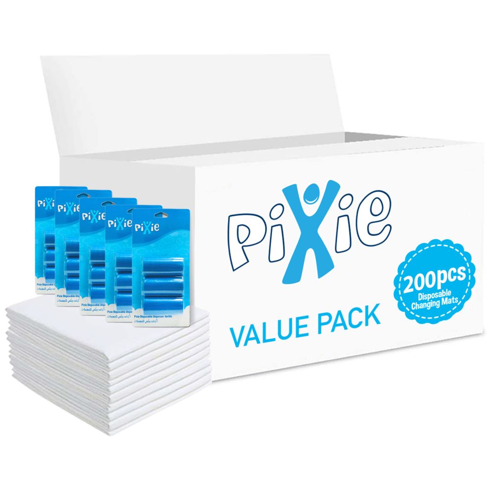 Pixie - Changing Mats 200 + Pack Of 5 Refill Blue 300 Nappy Bags