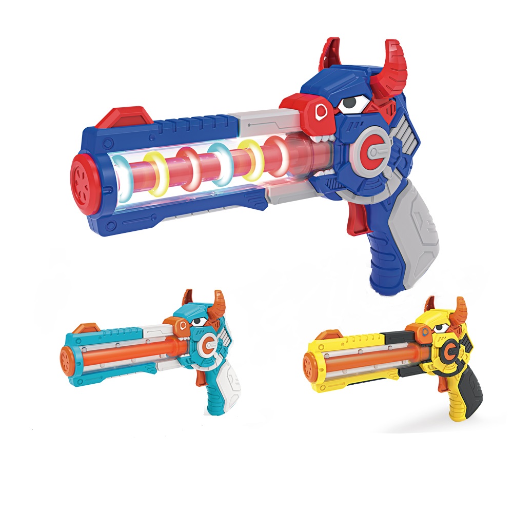 Feature | Bull head design, Sci-Fi aesthetic, Gun shooting sound effects, Encourages imaginative play | |