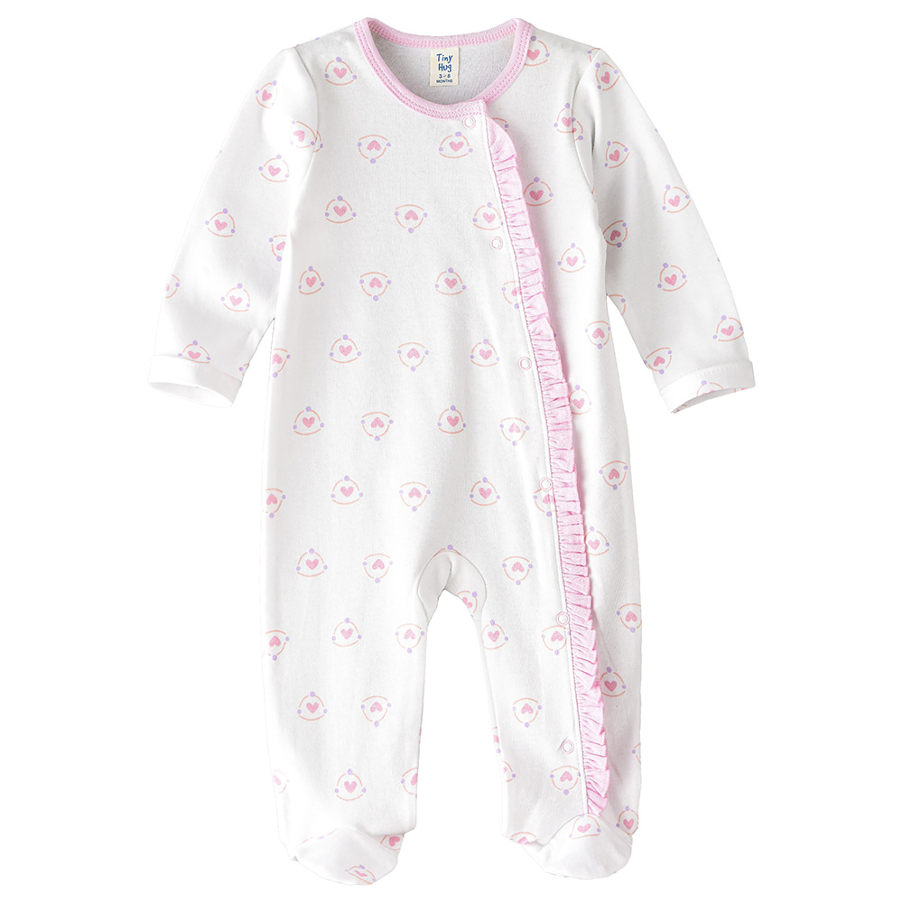 Tiny Hug - Girls Soft And Comfortable Cotton Sleepsuit - White/Pink