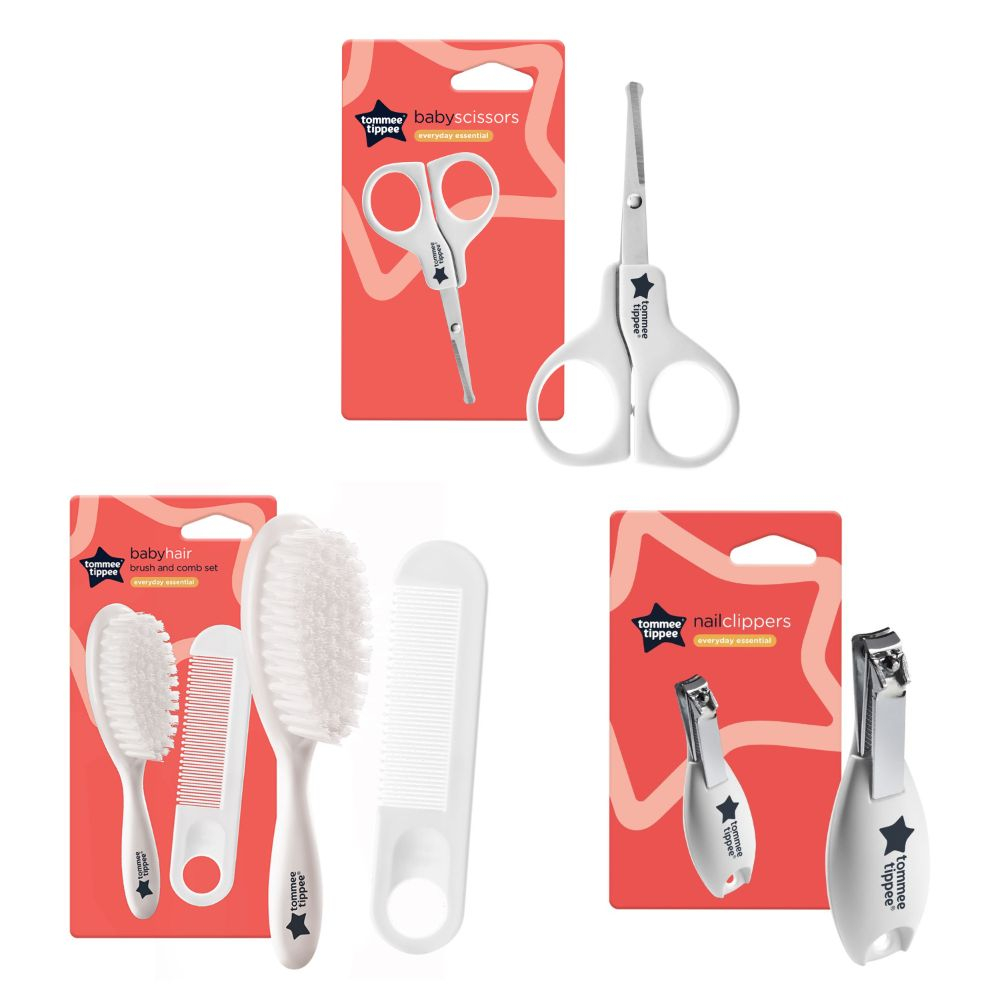 Tommee Tippee Baby Brush & Comb - White, Nail Scissors - White And Nail Clippers - White - Package May Vary