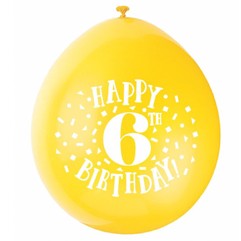 - Assorted Colour 6th Birthday Latex Balloons 10pk