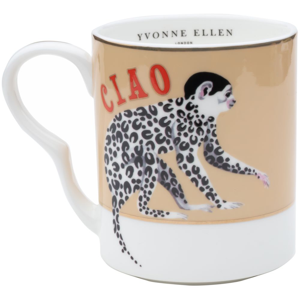 div:first-child]:line-clamp-4">One of Yvonne Ellen's signature illustrations appears on this Monkey Ciao Mug. A soft beige glaze and gold trimming together with a delightfully fashioned ridge handle make this a pleasure to look at and to use.