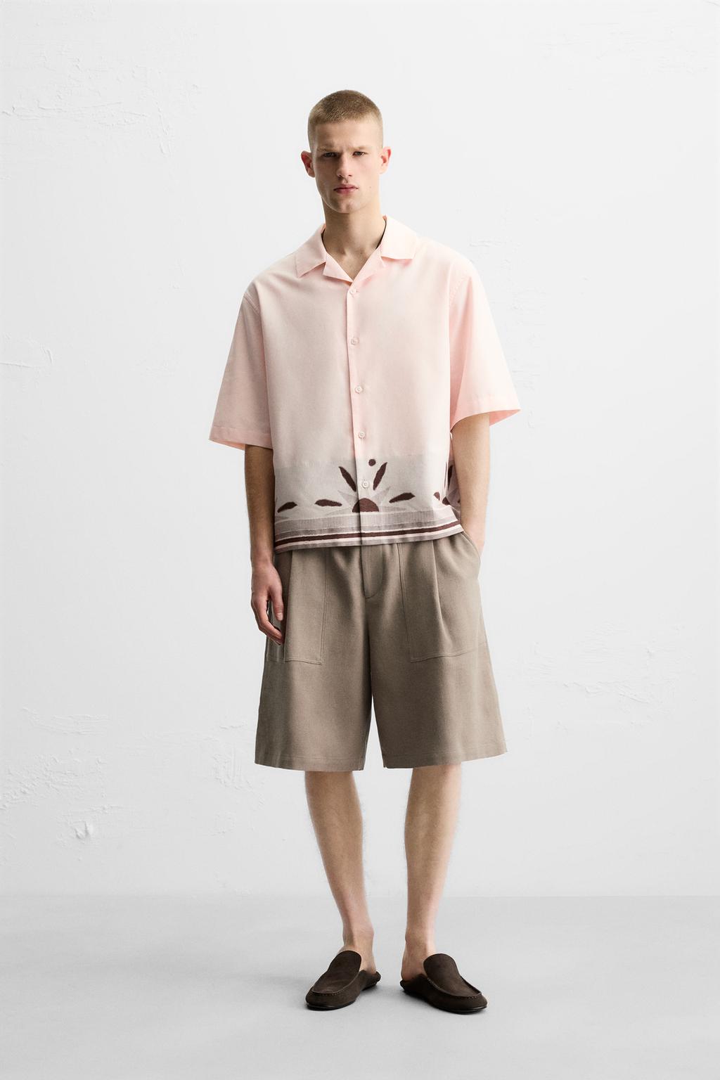 Boxy fit cotton shirt. Camp collar and short sleeves. Button-up front.